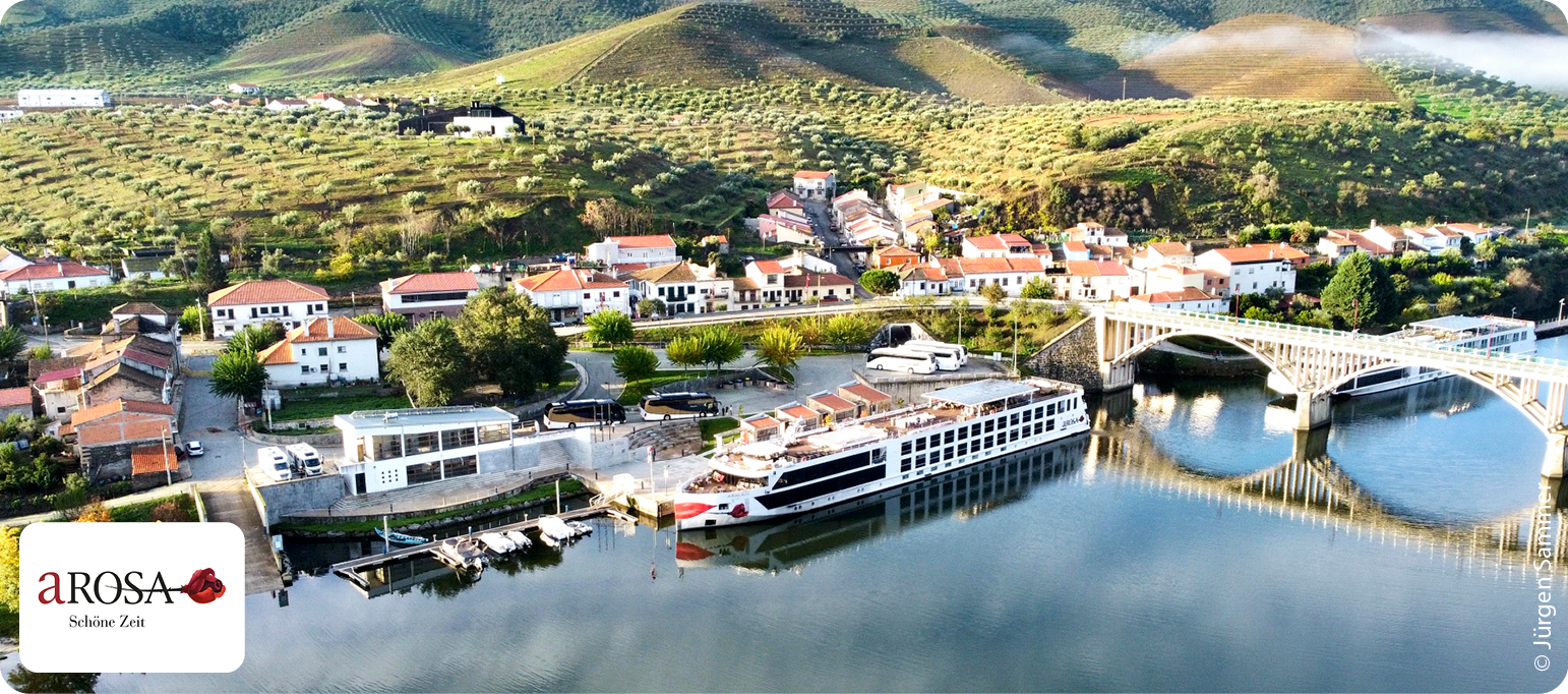Erleben Sie den Douro mit Halt in Régua – umgeben von terrassierten Weinbergen. Genießen Sie portugiesische Lebensart, spektakuläre Natur und entspannte Tage an Bord.